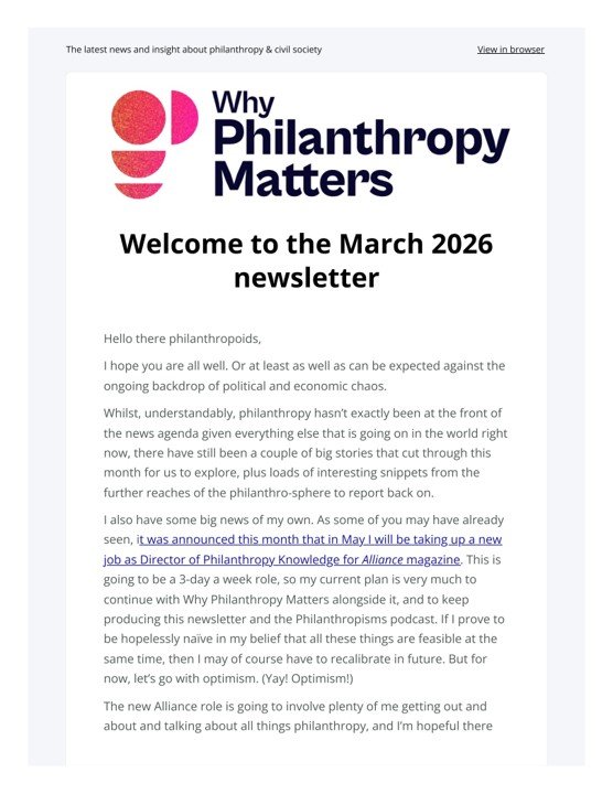 Read all the back issues of the Why Philanthropy Matters Newsletter. Subscribe for future editions HERE.